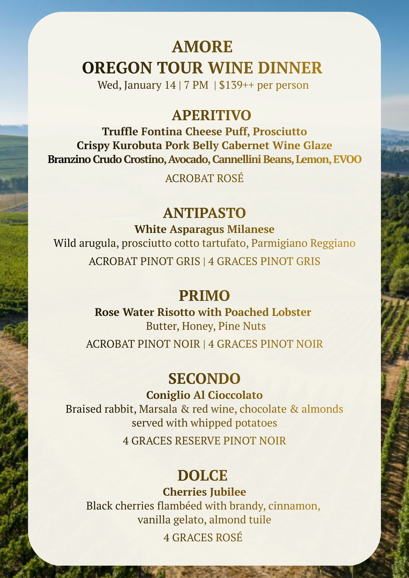 Red wine, herbs, Burrata, risotto, & baby carrots
